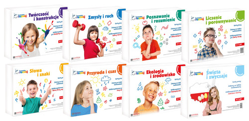 96 karty pracy do kopiowania (w niektórych zestawach dodano pojedyncze karty kolorowe, jednak znajdujące