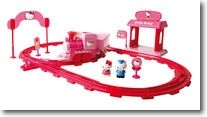Możesz godzinami jeździć prywatnym pociągiem ekspresowym Hello Kitty i zmieniać mu tor jazdy za pomocą zwrotnicy. W zestawie znajduje się komplet torów do samodzielnego montażu, stacyjka kolejowa, lokomotywa, wagonik, sygnalizator świetlny i dwie figurki: Hello Kitty i Dear Daniel. Gdzie dzisiaj pojedzie Hello Kitty? Zawartość: Hello Kitty, Dear Daniel, tory, lokomotywa z wagonikiem, stacja kolejowa, akcesoria.