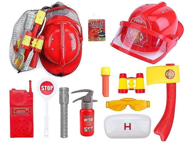 zestaw strażaka, z hełmem; 32x20x10cm, siatka