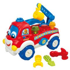 To zabawna ciężarówka z narzędziami wyposażona w funkcje mechaniczne i elektroniczne.