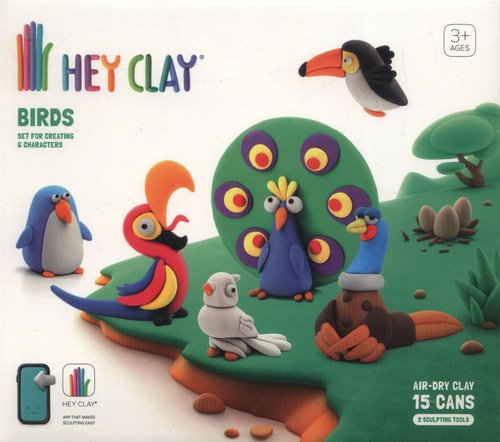 PTAKI. Kolorowa, samoutwardzalna glina modelarska, 15 puszek z zabawną interaktywną aplikacją dla dzieci w wieku 3 lat i więcej.