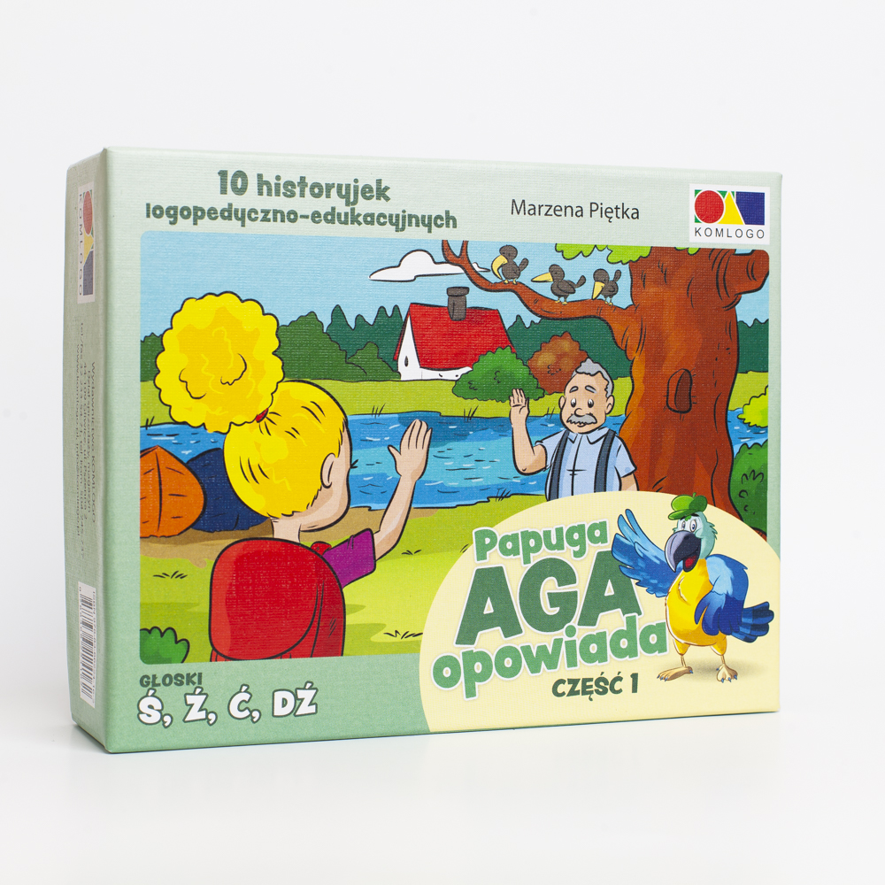 Papuga Aga opowiada. Część 1 - ś, ź, ć, dź to zestaw 10 historyjek obrazkowych 4-elementowych, które można wykorzystać w terapii logopedycznej i zabawach ogólnorozwojowych dzieci w wieku przedszkolnym i wczesnoszkolnym.