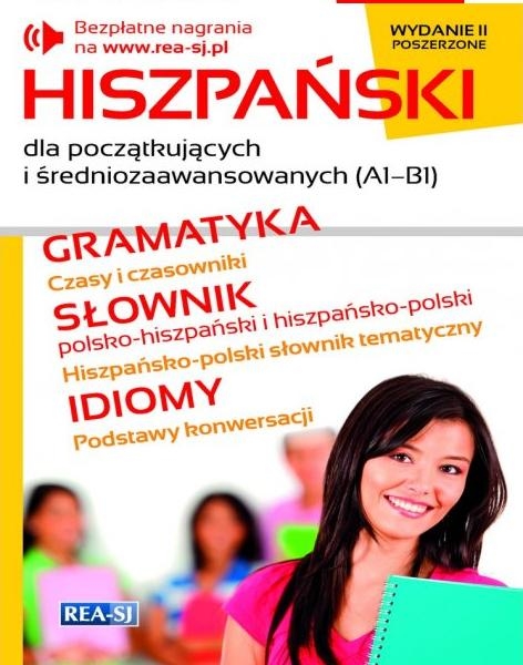 Wydanie II poszerzoneBezpłatne nagrania do pobrania na stronie: www.rea-sj.plPublikacje stanowią doskonałą pomoc zarówno dla tych, którzy dopiero zaczynają, jak i dla tych, którzy porządkują zdobytą już wiedzę o języku obcym.Publikacja zawiera:- Podstawy gramatyki hiszpańskiej - zawierają m.in.: zasady użycia zaimków osobowych, przyimków, odmiany rzeczowników, przymiotników i ich stopniowania. Przedstawiają również szyk wyrazów w zdaniach, sposób ich tworzenia, liczebniki porządkowe oraz główne, itp.- Czasy i czasowniki hiszpańskie - prezentują niezbędne informacje dotyczące podstawowych rodzajów czasów, typów czasowników i ich odmianę; ta część zawiera także spis oraz odmianę czasowników posiłkowych, modalnych i nieregularnych.- Słownik polsko-hiszpański i hiszpańsko-polski - składa się z około 20.000 artykułów hasłowych, prezentujących słownictwo z zakresu różnych dziedzin życia i sfer działalności człowieka.- Hiszpańsko-polski słownik tematyczny - zawiera 46 kategorii tematycznych. Hasła pogrupowano według najważniejszych dziedzin życia, a następnie podzielono na kategorie bardziej szczegółowe. Na przykład w kategorii CUERPO HUMANO, można znaleźć: partes del cuerpo, cabeza, órganos internos, huesos y músculos, corazón, vasos sanguíneos y venas, sentidos.- Idiomy hiszpańskie - zawierają około 1.500 najczęściej stosowanych i najbardziej popularnych wyrażeń idiomatycznych wraz z ich polskimi odpowiednikami oraz przydatne przysłowia i powiedzenia.- Podstawy konwersacji - składają się z 32 działów tematycznych zawierających ponad 500 zwrotów z transkrypcją wymowy. Dwujęzyczne nagrania wszystkich wyrażeń znajdują się na stronie internetowej: www.rea-sj.pl