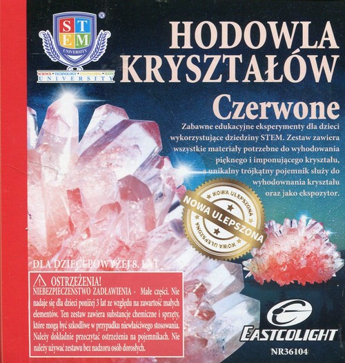Zabawne edukacyjne eksperymenty dla dzieci wykorzystujące dziedziny STEM. Zestaw zawiera wszystkie materiały potrzebne do wyhodowania pięknego i imponującego kryształu, a unikalny trójkątny pojemnik służy do wyhodowania kryształu oraz jako ekspozytor.