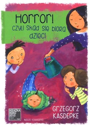 Pani Miłka połknęła dziecko! I wcale się z tym nie kryje! Na przedszkolaki pada blady strach. Kto będzie następny? Rezolutny Bodzio, Rozalka czy też Grześ? Na wszelki wypadek najlepiej ukryć się w toalecie... albo w szatni... albo w gabinecie pani dyrektor... A jeśli ona jest w zmowie z panią Miłką? Trzeba natychmiast zadzwonić na policję! Przedszkolaki przeżyją prawdziwy horror, zanim odkryją, skąd się biorą dzieci...""Z satysfakcją przeczytałam tę książkę. Jest napisana sprawnie i dowcipnie. Problem narodzin omawia rzeczowo, prosto i zrozumiale. Bez nadmiaru informacji, ale też bez rumieńców zawstydzenia. Za to z wdziękiem i dużą dozą ciepła.Tytułowy horror rozgrywa się w dziecięcej wyobraźni, za pożywkę mając wyrywkowe informacje, zastępujące rzetelną wiedzę. Myślę, że książka niesie ważne przesłanie i dla małych, i dla dużych czytelników. Nie tylko odnośnie do problemu narodzin, lecz także dziecięcych lęków. Gorąco polecam wszystkim rodzicom"".Dagna Ślepowrońska, psycholog
