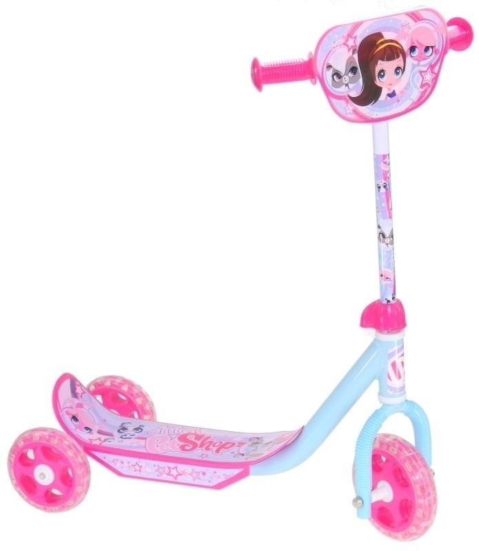 Hulajnoga trójkołowa dla dziewczynek z grafiką Littlest Pet Shop, przeznaczona jest do nauki i doskonalenia umiejętności jazdy na hulajnodze. Posiada sztywną, stalową ramę z szerokim podestem na stopę, zapewniającą stabilną pozycję. Koło wykonane są z PCV rozmiary: koło przednie 14 cm, koła tylne 12 cm. Hulajnoga posiada regulację wysokości kierownicy, a uchwyty kierownicy zostały wyposażone w szerokie kołnierze zabezpieczające. Dodatkowym wyposażeniem jest plakietka z grafiką na kierownicy. Waga produktu 2 kg, rozmiar po złożeniu - 8x34x65, wysokość max. 79 cm, waga użytkownika max. 20 kg.