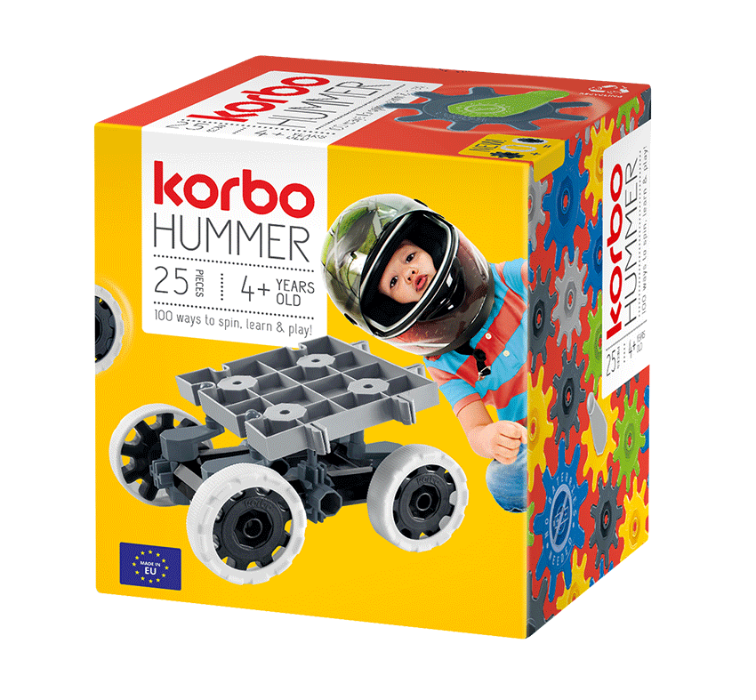 Korbo klocki HUMMER 25 el. szare. Zestaw kolorowych elementów z których można stworzyć niesamowite konstrukcje jakimi są pojazdy z oponami na kołach zębatych.