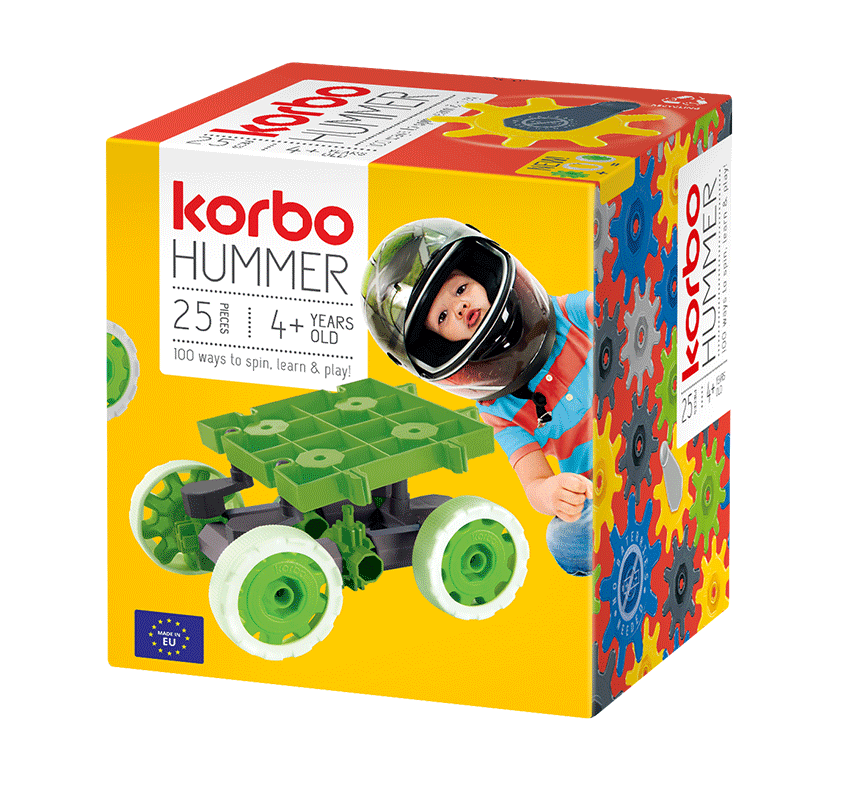 Korbo klocki HUMMER 25 el. zielony, Zestaw kolorowych elementów z których można stworzyć niesamowite konstrukcje jakimi są pojazdy z oponami na kołach zębatych