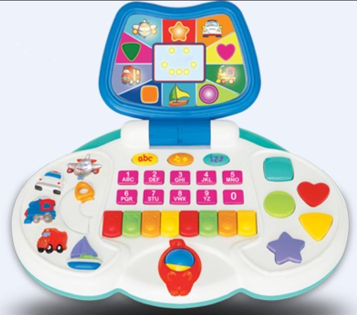Interaktywny laptop, który poprzez zabawę pomoże każdemu Maluszkowi w nauce cyfr, liter oraz kształtów. Gdy dziecko naciśnie przyciski o różnych kształtach i kolorach, zobaczy odpowiadający im obrazek na ekranie. Każdy klawisz mini-pianinka uruchamia jedną z ośmiu wesołych melodii. Poruszając kółkiem w małej myszce rozpoczniesz zabawę w odgadywanie kolorów, liter i cyfr. Przesuwając strzałkę usłyszysz odgłosy wydawane przez pięć różnych pojazdów.Zabawka wymaga baterii 3x1,5V LR6 (AA), zainstalowane w zabawce.