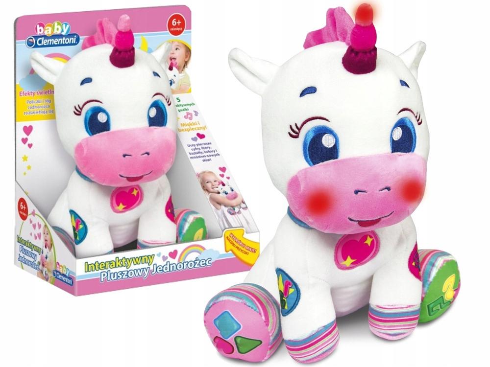 Miękka przytulanka z 5 interaktywnymi przyciskami do nauki pierwszych liczb, literek, kolorów i wielu nowych słów. Podczas wspólnej zabawy z jednorożcem poznasz wiele nowych słów, słuchając sympatycznych piosenek i zabawnych wierszyków.