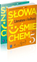 Cykl ,,Słowa z uśmiechem"" jest współczesną realizacją idei nauki przez zabawę. Rozwija aktywność, pasję poznawczą, gotowość do stawiania pytań, otwartość i kreatywność uczniów.Zalety podręcznika Literatura i kultura do klasy 5 to przede wszystkim:♦ starannie dobrane, interesujące dla dziecka teksty - współczesne utwory literatury młodzieżowej dopełnione literacką klasyką;♦ ciekawe i motywujące do pracy zadania i polecenia Rozumiem! Myślę! Działam!;♦ specjalne działy pomagające zapamiętać i skutecznie utrwalić materiał: To już znamy, powtarzamy (powtórzenia w formie rysunkowej); Pół żartem, pół serio (nauka na wesoło, w formie gier i zabaw powtórzeniowych); Wiem, umiem, rozumiem (test nawiązujący formą do sprawdzianu na koniec szkoły podstawowej).Do podręcznika jest dołączony Słowniczek ucznia klasy 5, który zawiera wszystkie ważne słowa, wyrażenia i zwroty oraz definicje, które będą potrzebne uczniowi do pracy na lekcji i w domu. Dzięki przejrzystemu uprządkowaniu materiału ułatwia naukę i powtarzanie koniecznych terminów. Słowniczek pozwala na szybkie przypomnienie sobie najistotniejszych informacji.Komplet dla dziecka na rok nauki z cyklem ,,Słowa z uśmiechem"" w piątej klasie:♦ podręcznik Literatura i kultura z kodem dostępu do elektronicznych ćwiczeń na platformie WSiPnet.pl,♦ dwa podręczniki z ćwiczeniami Nauka o języku i ortografia,♦ słowniczek.
