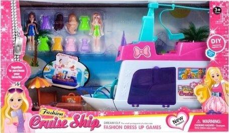 Interaktywny wycieczkowy statek dla lalek to propozycja dla tych którzy lubią kreatywne zabawy. Zabierz swoje lalki w niesamowity rejs Jachtem od MEGA CREATIVE! Statek jest rozkładany dzięki czemu zabawa nim jest atrakcyjniejsza. Na dole znajduję się salon i kuchnia natomiast na gurze sypialnia oraz łazienka. Na górnym pokładzie statek zawiera fotel dla kapitana, koło sterownicze oraz panel muzyczny z efektami świetlnymi oraz dźwiękowymi. Do zestawu dołączone są również dwie laleczki z wymiennymi włosami oraz ubraniami. Całość wykonana z plastiku oraz gumy. Zestaw przeznaczony dla dzieci w wieku; 3+. Wymaga zasilania bateriami 3 x AG13- załączono do zestawu. Wymiary opakowania (dł. x wys. x gł.) [cm]: 49x29x14.