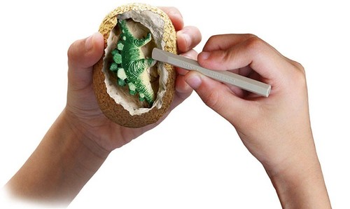 Każde z tych intrygujących jaj zawiera w sobie jednego miniaturowego dinozaura. Musisz tylko używając ostrożnie dołączonego dłuta, wykopać go z prehistorycznej gliny! Bądź odkrywcą wymarłego świata wyjątkowych gadów! Zbierz całą kolekcję dwunastu dinozaurów i naucz się ich rozpoznawać!
