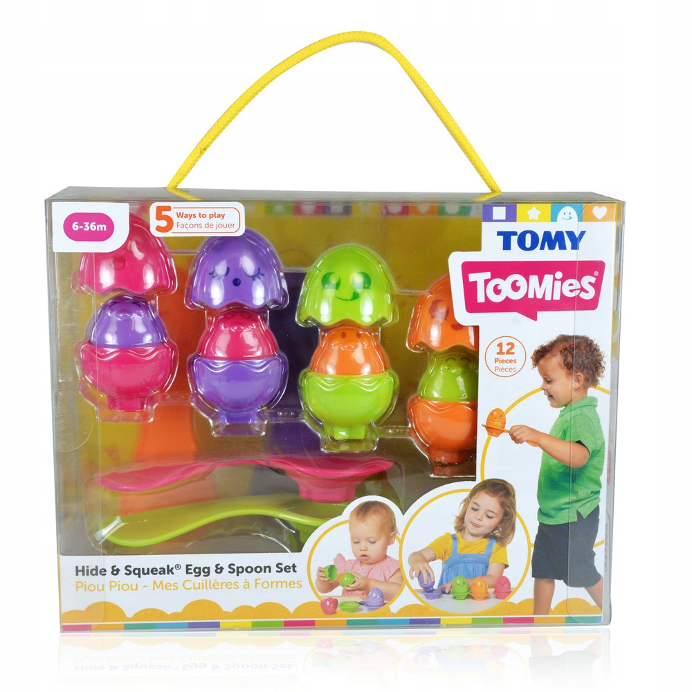 Na Twój znak, gotowi do startu, start! - chwyć zestaw Hide and Squeak Egg i obserwuj, jak Twoje dziecko bawi sie i uczy! Ta zabawka wykorzystuje zabawę, aby wspierać dobry rozwój motoryczny i zdolności poznawcze dziecka. Jajeczka z łyżeczkami od Tomy zapewnią wiele godzin wspaniałej zabawy. Maluch będzie mógł ćwiczyć swoją koordynacje i zdolności manualne przy okazji miło spędzając czas. Zestawem można bawić się na różne sposoby. Dziecko będzie musiało dopasować jajka do podstawek przy okazji ucząc się kształtów oraz kolorów. Po ich złożeniu można umieścić je na odpowiednich łyżeczkach i urządzić wyścig z całą rodziną. Jajeczka wydają dźwięki. Jajka Hide and Squeak są zabawkami edukacyjnymi, które odpowiadają potrzebom Twojego dziecka w miarę jego wzrostu, zapewniając nieograniczone możliwości!