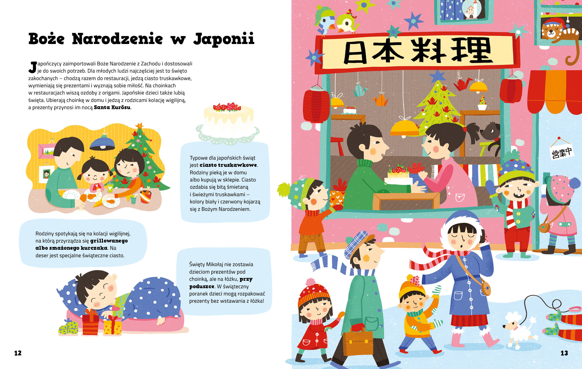 Odszukaj psotne gobliny, które wchodzą do greckich domów przez kominek i płatają figle. Poznaj Befanę, dobrą włoską wiedźmę, która potrafi nieźle zaskoczyć najdziwniejszymi prezentami. A może spodoba ci się pomysł, żeby na pasterkę pojechać na wrotkach, jak dzieci z Wenezueli?