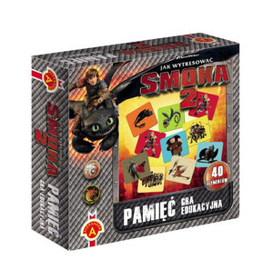 Gra Pamięc. Produkty licencjonowane Drem Works, JAK WYTRESOWAĆ SMOKA 2. To prosta i łatwa gra. Każdy, kto gra w ""Pamięć"" ćwiczy swą spostrzegawczość, koncentrację, prawidłowość skojarzeń, a przede wszystkim doskonali swą pamięć. Ważną i wyjątkową cechą tej gry jest to, że dorośli grając w nią z dziećmi nie mają przewagi wynikającej z różnicy wieku. W każdej rozgrywce dzieci są silnym przeciwnikiem dla dorosłych i najczęściej z nimi wygrywają. Gra w ""Pamięć"" to dużo wesołej i ekscytującej zabawy, a także dobry wysiłek umysłowy.