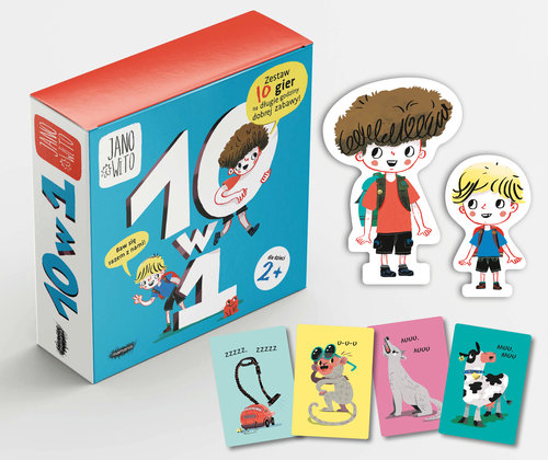 Koniec z nudą w domu! Niespodzianka dla małych i dużych fanów serii „Jano i Wito”, bestsellerowych książek dla dzieci autorstwa Wioli Wołoszyn, fantastycznie zilustrowanych przez Przemka Liputa. To aż 48 kart z ilustracjami z książek i aż dziesięć propozycji gier i zabaw, nie licząc tych, które sami wymyślicie! Kartami można m.in. zagrać w klasycznego piotrusia i w memory, można pobawić się nimi w kalambury i zagadki. Znakomicie posłużą też jako karty narracyjne, a na ich bazie można stworzyć niezliczone wersje bajek modułowych. Dzięki zróżnicowaniu poziomu trudności poszczególnych gier i zabaw są idealne dla dzieci w każdym wieku. To będzie dobry dzień!