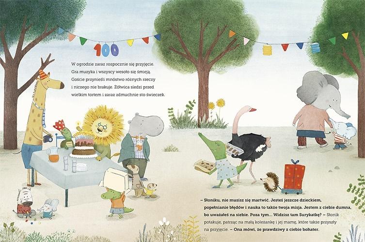Mały słoń jest już na tyle duży, że może iść samodzielnie na zakupy. Otrzymuje od mamy listę rzeczy potrzebnych do przygotowania przyjęcia urodzinowego stuletniej Żółwicy. Co może pójść nie tak?