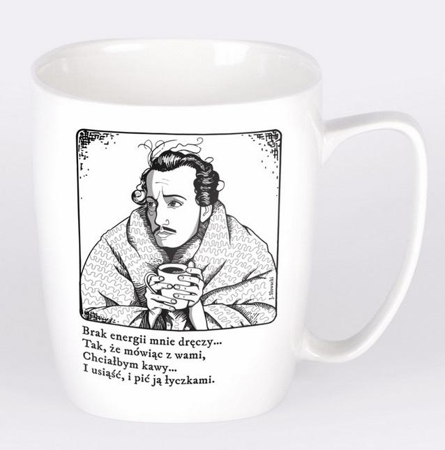 Kiedy w trudny poranek gryzie Cię robak smutku i zazdrościsz Salomei, że może śnić swój srebrny sen, Twoim wybawieniem może okazać się jedynie aromatyczna kawa. Wypita z kubka z fantazyjnym wizerunkiem Juliusza Słowackiego pobudzi do życia każdego Kołdriana! Juliusz nie pyta, Juliusz rozumie…