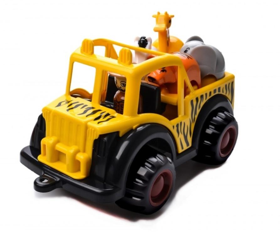 Samochód terenowy do zadań specjalnych, z którym dzieci wyruszą w niezwykłą podróż po safari. Kierowca-podróżnik bardzo chce dotrzeć do stada żyraf, słoni i zebr jednak potrzebuje naszej pomocy. Uwaga na niedźwiedzia podobno był widziany w tej okolicy! Pojazd zaprojektowany w Szwecji, wykonany z wysokiej jakości miękkiego plastiku. Posiada wielkość 28 cm, umożliwiając zabawę w piaskownicy, ogródku. Jego kółka są ciche i nie rysują powierzchni. Zabawkę można myć w zmywarce.
