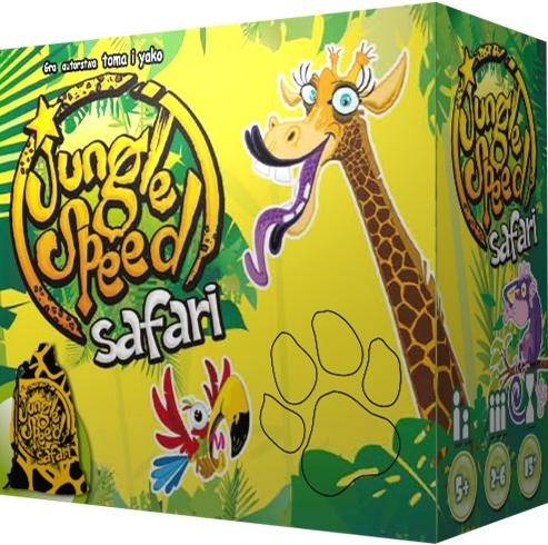 Pięć totemów! Zwierzęta zamieszkujące dżunglę prowadzą spokojny żywot do czasu, gdy nadchodzi pora posiłku... Dzika natura i pierwotne instynkty biorą wówczas górę. Najbardziej wygłodniałe bestie spieszą najszybciej w stronę swoich ofiar, podczas gdy wolniejsze dają upust swej złości głośnym rykiem. A kameleony, jak to kameleony, chowają się wśród liści... Ale dopiero gdy pojawia się łowca, narasta prawdziwa panika. Ratuj się kto może! Jungle Speed Safari to nowa odsłona kultowej już gry Jungle Speed, wspaniałej zabawy dla całej rodziny. Tym razem zabiera nas ona w podróż po afrykańskiej dżungli i równinach Serengeti. Będziemy karmić i polować na afrykańskie zwierzęta, wypatrywać zmieniających kolor kameleonów, ryczeć jak tygrys, trąbić jak słoń i przede wszystkim dobrze się bawić w tej ćwiczącej refleks i spostrzegawczość grze! Naszym celem jest zdobycie jak najwiekszej ilości kart, ale łatwo nie będzie, bo tym razem w grze totemów do łapania jest aż 5! Czy będziesz w stanie odróżnić jedne zwierzęta od innych w tej ferii barw, jaką cechuje się afrykański kontynent? Podstawowe informacje - Liczba graczy: 2 - 6 osób, Czas gry: ok. 15 minut, Waga: ok. 0.20 kg. Zawartość pudełka: 5 totemów (pożywienie), 42 karty, 1 woreczek, 1 instrukcja.