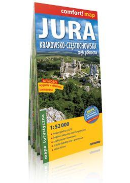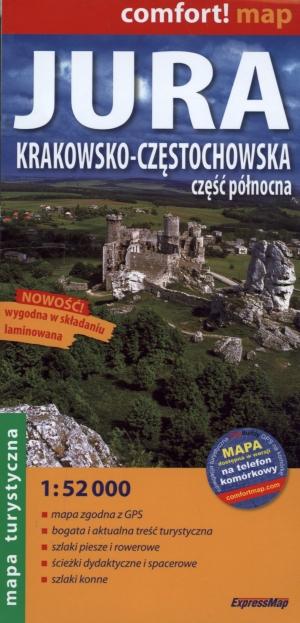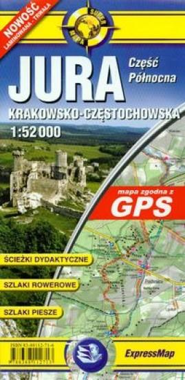 Jura Krakowsko-Częstochowska - część północna to:- Mapa laminowana- Skala 1 : 52 000 - Szlaki rowerowe- Szlaki piesze- Ścieżki dydaktyczne. Mapy laminowane  są: - Trwałe, nie przecierają się na zgięciach, gwarantują wielokrotne rozkładanie i składanie, są odporne na wilgoć i zabrudzenia - Wygodne, specjalne zawiasy sprawiają, że składanie mapy jest proste w każdych, nawet niesprzyjających warunkach (w samochodzie, w deszczu, itp.) - Praktyczne, pozwalają na wielokrotne nanoszenie i ścieranie własnych notatek, np. zaznaczanie tras lub obiektów co ułatwia dojazd i odnalezienie żądanego celu - Czytelne i wyraźne, laminowanie gwarantuje zachowanie pierwotnego wyglądu mapy przez cały czas użytkowania, druk mapy nie niszczy się i nie blaknie.