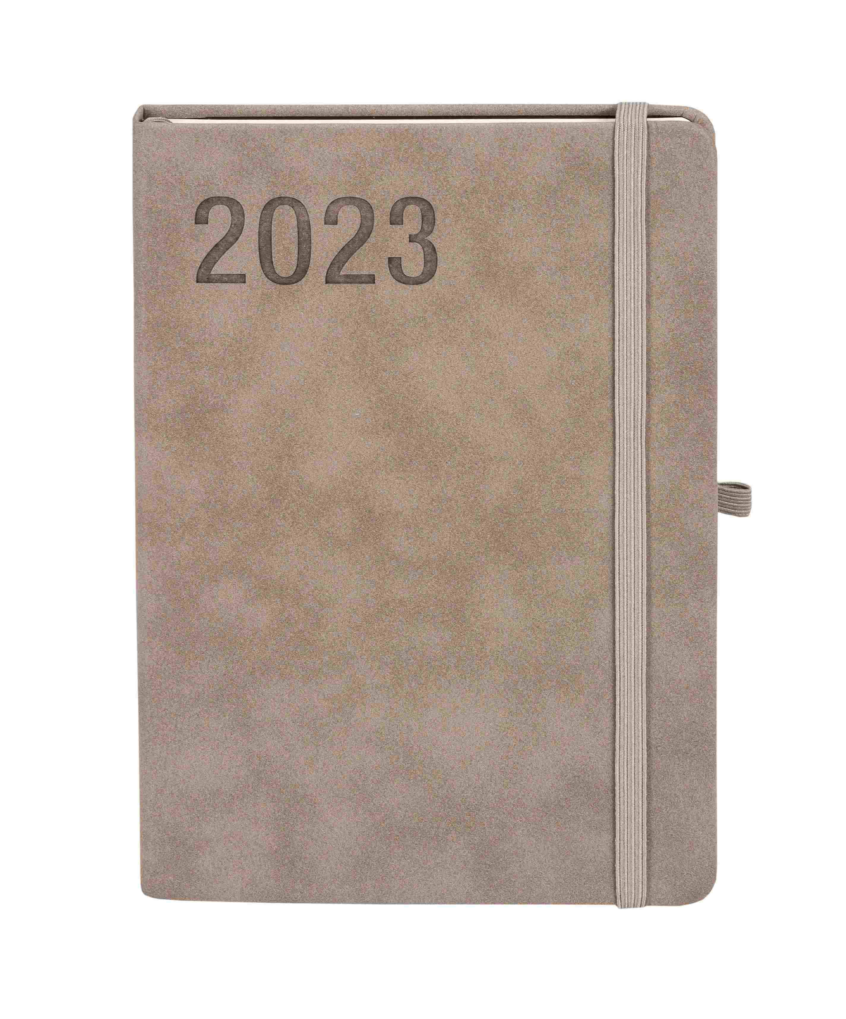 • Kolekcja: Nuba • Format: A5 • Wymiary okładki: 210x145 mm • Układ: tydzień do wglądu • Ilość stron: 144 • Oprawa: twarda • Materiał: skóra ekologiczna, przypominająca zamsz • Gramatura papieru: 80g • Kolor papieru: off white • Dodatki: plan roku 2023, ważne wydarzenia, skorowidz adresowy, notatki • Pionowa gumka zamykająca: w kolorze okładki • Wstążka: w kolorze okładki • Gumka na długopis: w kolorze okładki • Zaokrąglone rogi: tak • Wyklejka: czarna • Koperta: tak