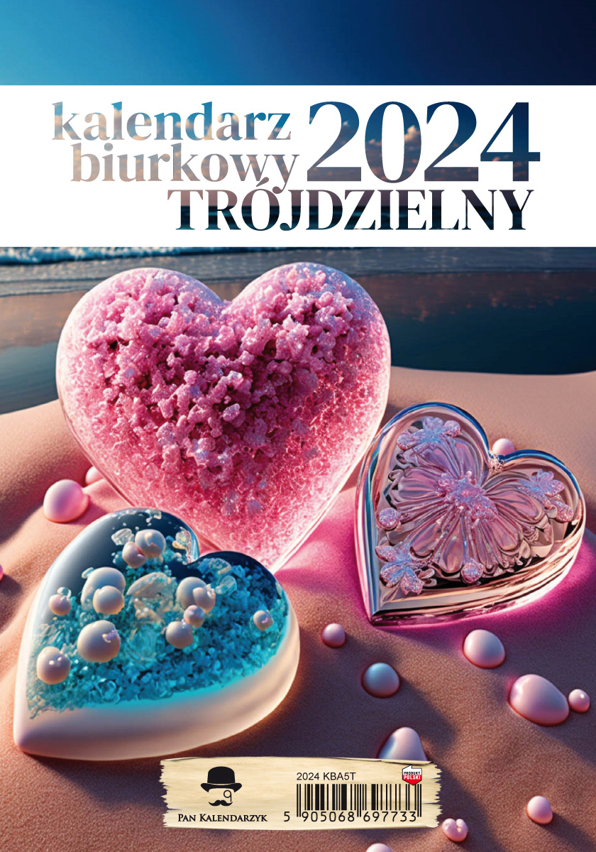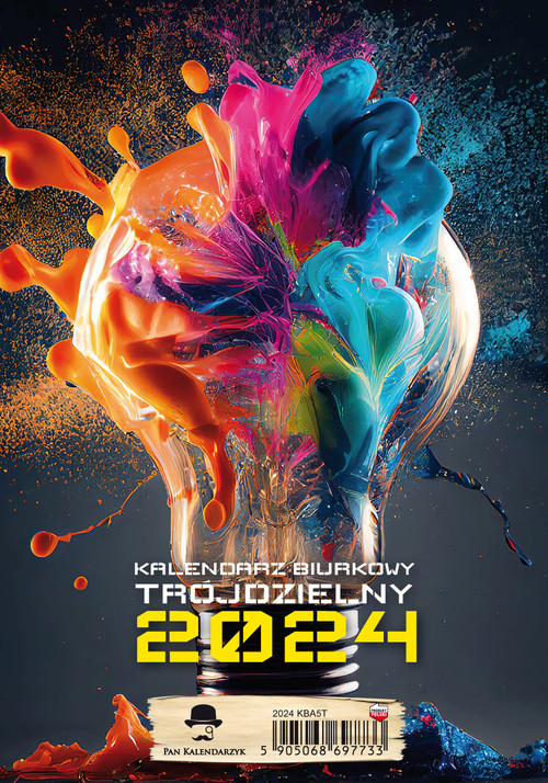 Kalendarz Biurkowy A5 TRÓJDZIELNY PIONOWY. Oprawa czarna spirala na grubej podstawie kartonowej. Format 145/210mm. Papier offsetowy, okładka papier kredowy. 26 strony (dwa układ miesięczne ) + okładka. Układ kalendarium w stylu kalendarza trójdzielnego ( z drugiej strony miejsce na notatki na każdy dzień) Mix wzorów, pakowany po 8szt. Kalendarz zawiera imieniny, nazwy świąt, numeracje tygodni, znaki zodiaku.