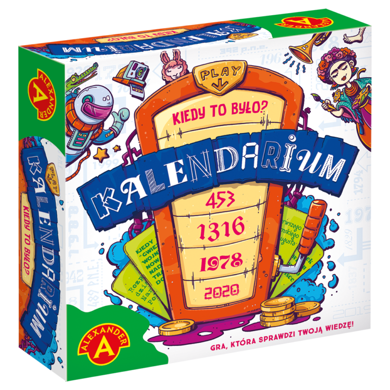 Są takie daty, które zna niemal każdy z nas. Chrzest Polski, Bitwa pod Grunwaldem, wybuch I Wojny Światowej - możemy je podać nawet wyrwani ze snu w środku nocy. Ale czy wiecie, w którym roku premierę miała kultowa gra ,,Doom""? A kiedy ukazał się na rynku pierwszy komiks z serii o Tytusie, Romku i Atomku? ,,Kalendarium"" to świetny quiz, który nie tylko sprawdza waszą wiedzę historyczną, ale także pozwala wykazać się znajomością niezwykle różnorodnych dziedzin. To także lekcja przewidywania, bo aby zdobyć punkty nie trzeba znać dokładnej daty, lecz potrafić określić, która z odpowiedzi jest najbliższa prawdzie! Zwycięzcą zostanie osoba, która ma świetną pamięć do dat, a także potrafi odważnie obstawiać, gdyż to każdy gracz decyduje ile pchełek postawi na daną odpowiedź - 1, 2, czy 3.