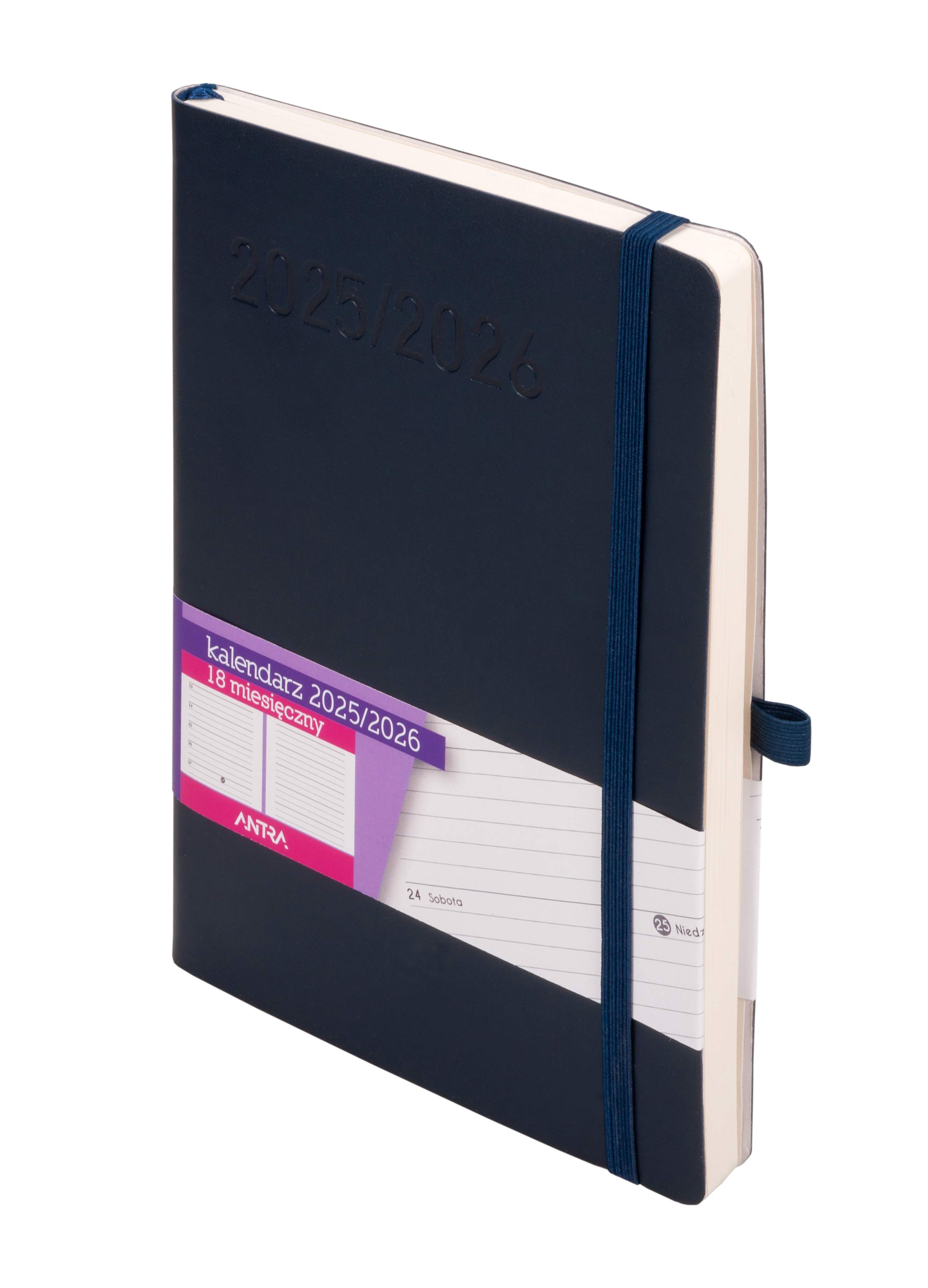 Wnętrze: tydzień na stronie (TNS) z notesem, Liczba stron: 240,Gramatura papieru: 80 g/cm2,Papier: chamois Okładka: twarda, ze skóry ekologicznej,Pionowa gumka zamykająca, Gumka na długopis,Koperta,Miesięczny planer przed każdym,miesiącem,Zakres dat: lipiec 2025 grudzień 2026.Wnętrze kalendarza: skrócony kalendarz 2025-2027, notatnik 1 strona, kalendarz 2024-2025 z miesiącami, ważne wydarzenia 3 strony, plan roku 2024-2025, adresy od A do Z (po 2 litery na stronie), notatnik 12 stron