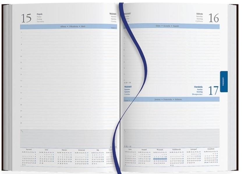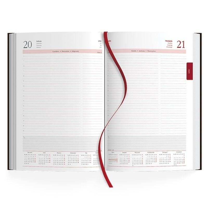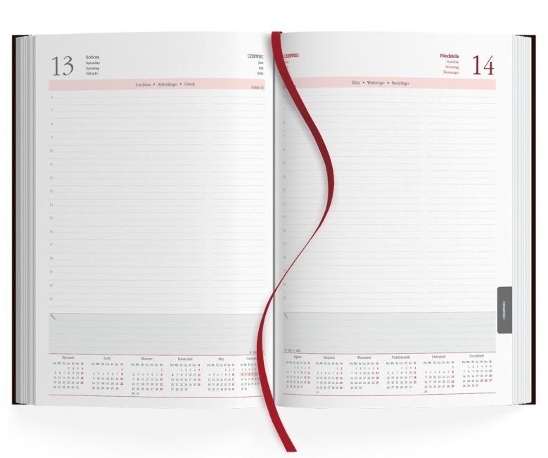 w języku polskim, angielskim, niemieckim, hiszpańskim, numeracja dni i tygodni, potrójne imieniny, perforacja narożników