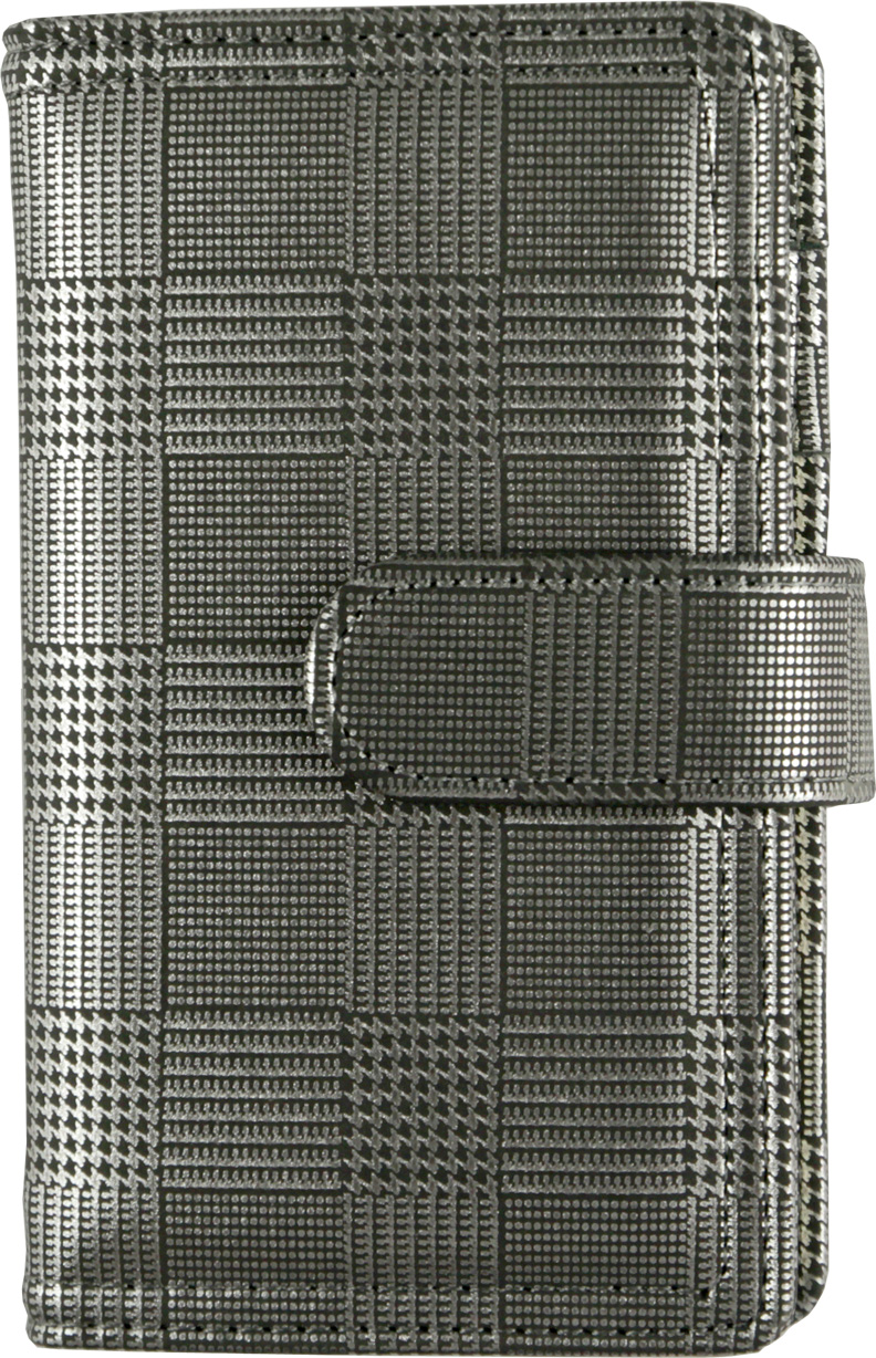 - kalendarz książkowy dzienny z zapięciem, twarda oprawa, format B6, rozkład: dzień na 1 stronie, papier chamois, druk dwukolorowy (czarno-czerwony), skrócone kalendarium roku poprzedniego, bieżącego i następnego, w dolnej części strony skrócone kalendarium miesięczne, notes, skorowidz tele-adresowy, miejsce na długopis, tasiemka