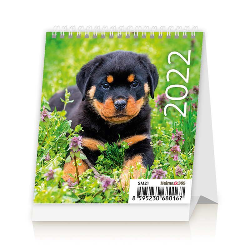 Mini kalendarz biurkowy na spirali, z obrazkami zwierząt, rozkład miesięczny. Kalendarz stabilnie utrzymuje swoją pozycję. Wymiar 9,6 x 10,5 cm.