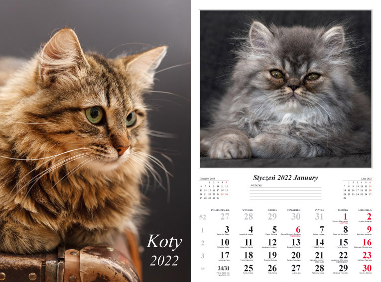 Kalendarz 2022 Ścienny dwustronny Koty RADWAN