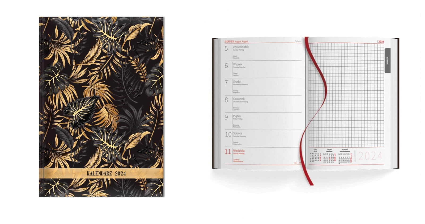 -Kalendarium: w języku polskim, angielskim, niemieckim, numeracja tygodni, podwójne imieniny