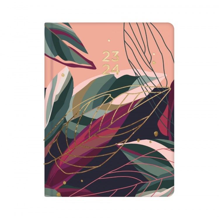 kalendarz książkowy 2023/2024, 18 miesięcy: lipiec 2023 - grudzień 2024, format: B6, wymiary: 12,5 x 17 x 1,5 cm, układ: tygodniowy, wewnątrz: wstążka, plan roku 2022, notatnik, adresownik, linijka, kalendarium dodatkowe na 2022-2023, gramatura: 120 g/m2, oprawa: twarda, gąbkowana