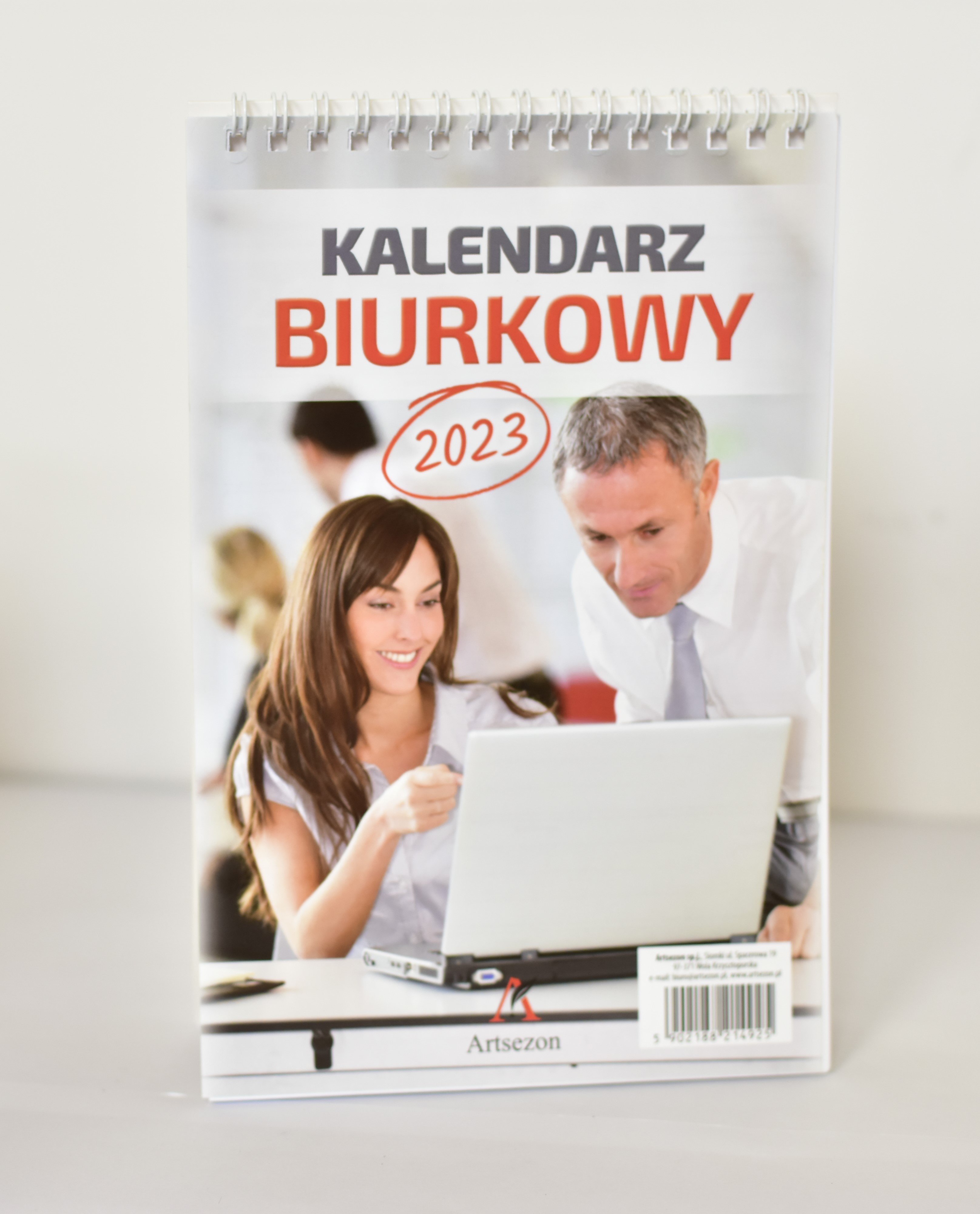 KALENDARZ BIURKOWY A5 PIONOWY dostępny w 5 wzorach, 56 stron, kalendarium tygodniowe w układzie pionowym z miejscem na notatki, rozmiar 140x205mm, podkładka bindowana - namiot na spirali