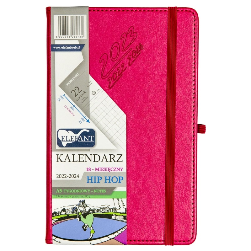Kalendarz 2023 A5 tyg. Hip hop karmazynowy ELEFANT