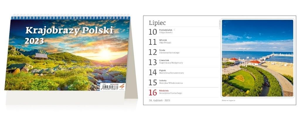 Kalendarz biurkowy na spirali, tygodniowy ze zdjęciami, z miejscem na notatkę przy każdym dniu. Kalendarz posiada specjalną podpórkę, która zapewnia stabilność. Format: 22,6 x 13,9 cm