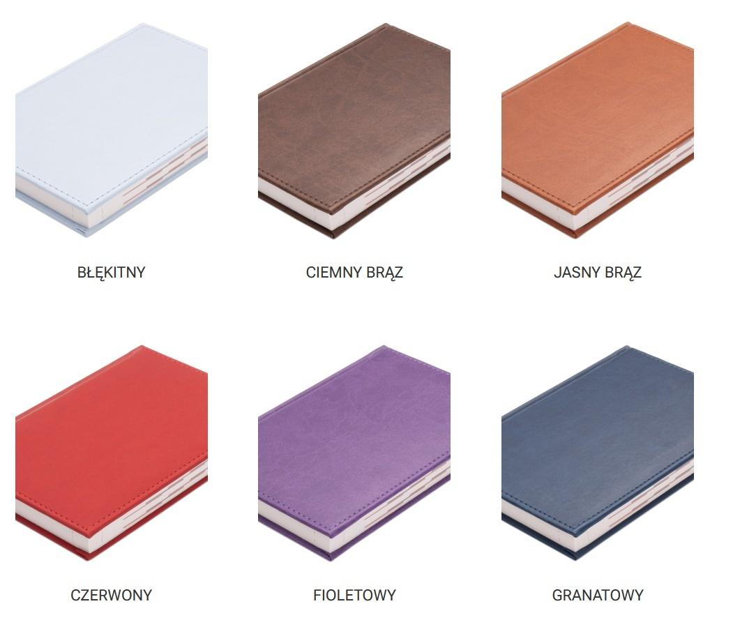 Układ: jeden dzień na stronie, sobota niedziela na jednej stronie, przed każdym miesiącem terminarz miesięczny