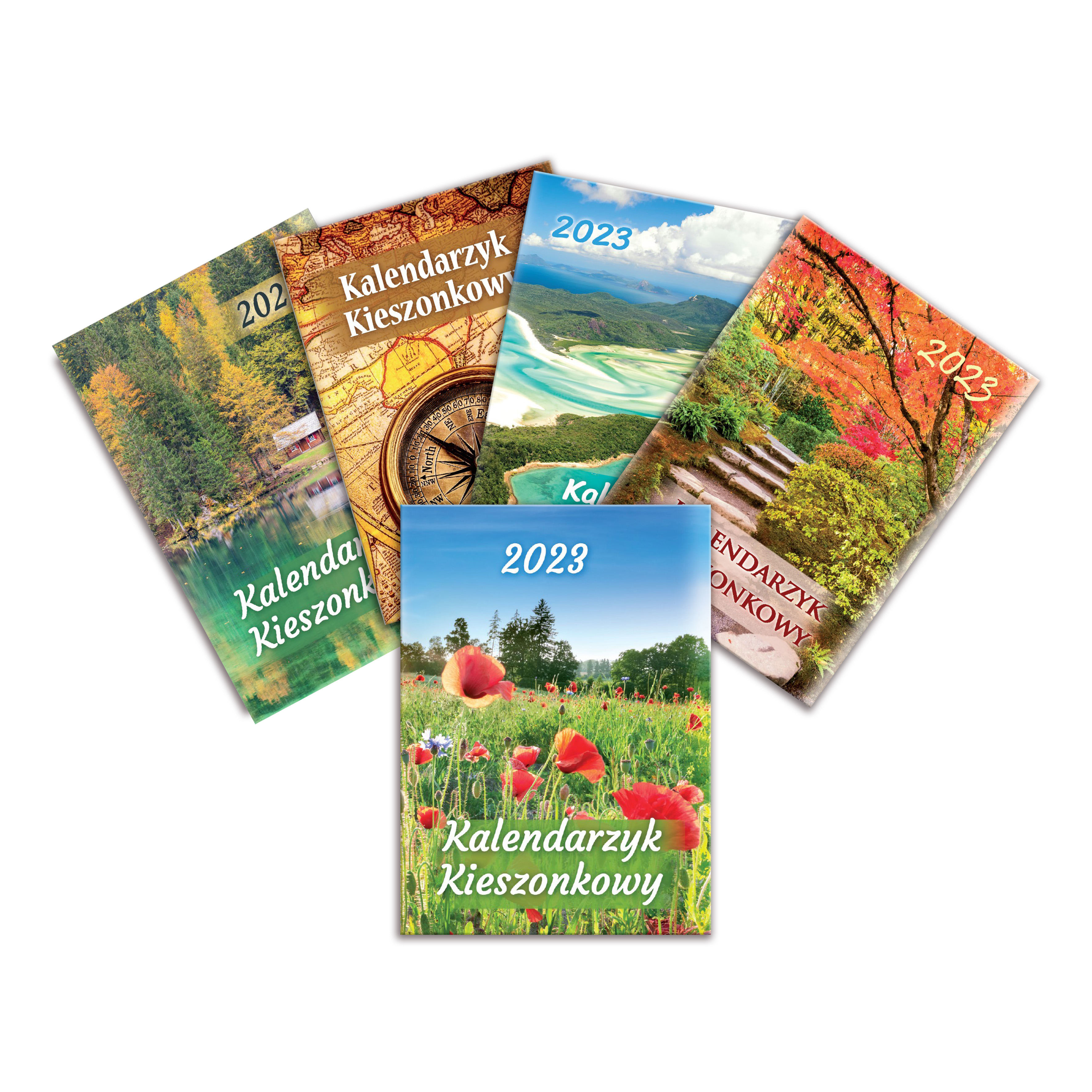 KALENDARZYK KIESZONKOWY dostępy w 12 wzorach, 64 strony, układ tygodniowy, na końcu telefony alarmowe i miejsce na notatki, rozmiar 75x105mm, okładka papierowa uszlachetniona lakierem UV