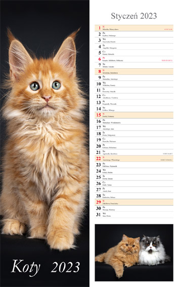 Opakowanie Kalendarz 2023 Ścienny pasek Koty