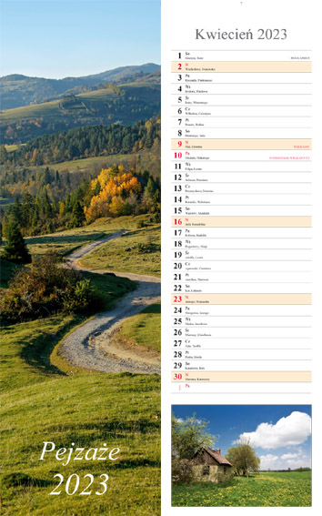 Kalendarz 2023 Ścienny pasek Pejzaże