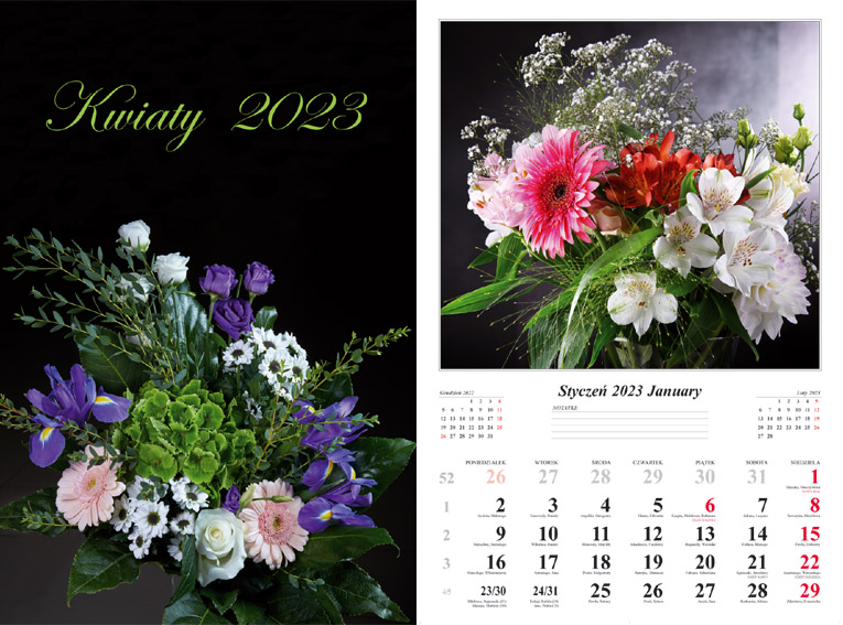 Opakowanie Kalendarz 2023 Ścienny wieloplanszowy Kwiaty