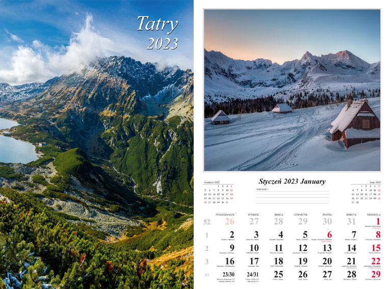 Opakowanie Kalendarz 2023 Ścienny wieloplanszowy Tatry