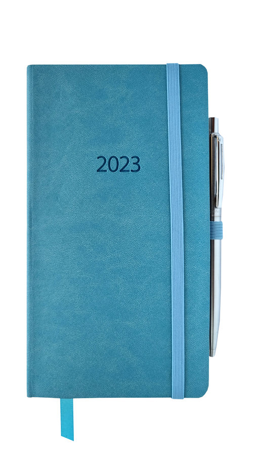KK-DLT F – Kalendarz Książkowy DL Tygodniowy w oprawie FLEX (elastycznej), tydzień na rozkładówce, zawiera 128 stron w formacie 95x175 mm, papier chamois (kremowy). Idealny do torebki, wyposażony w elastyczne zapięcie (gumka) i zakładkę w szerokim wyborze nowoczesnych kolorów, twarda (elastyczna FLEX), szyta oprawa z zaokrąglonymi rogami.