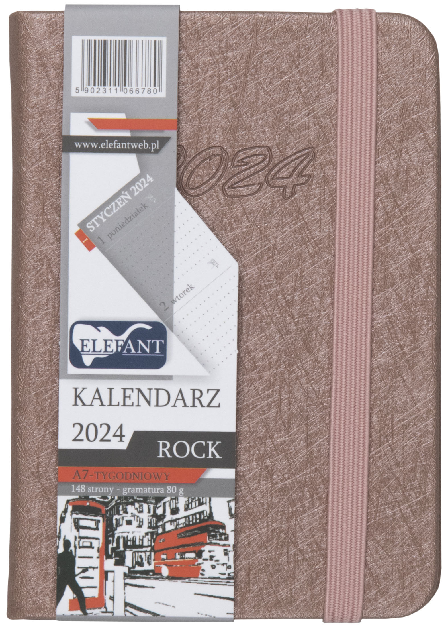 wewnątrz: plan roku i rozkład roku 2024, terminy ferii zimowych, święta oficjalne i zwyczajowe, notes, skorowidz teleadresowy, kalendarium dodatkowe na 2023-2024-2025 rok