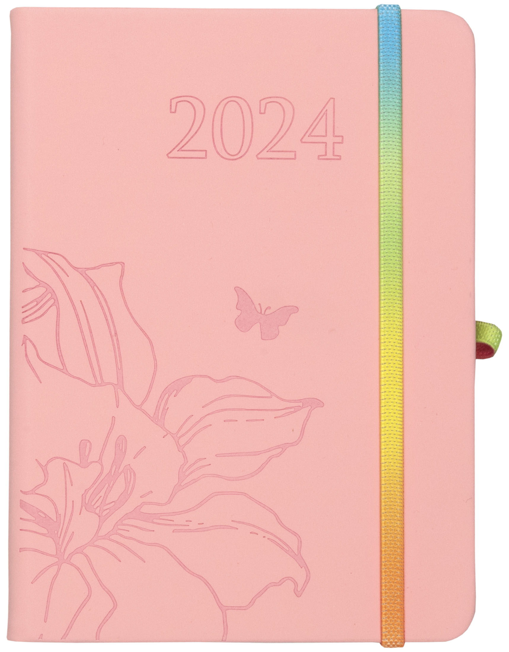 • wewnątrz: plan roku i rozkład roku 2024, terminy ferii zimowych, święta oficjalne i zwyczajowe, protokół powypadkowy w przypadku stłuczki, notes, skorowidz teleadresowy, kalendarium dodatkowe na 2023-2024-2025 rok