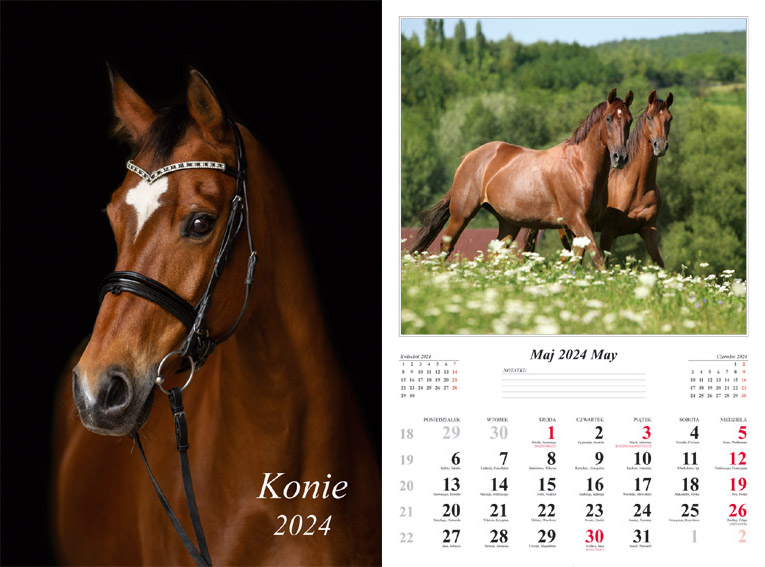 Okładka książki Kalendarz 2024 Ścienny dwustronny Konie