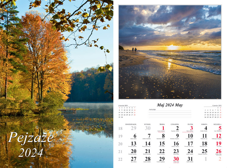 Kalendarz 2024 Ścienny dwustronny Pejzaże